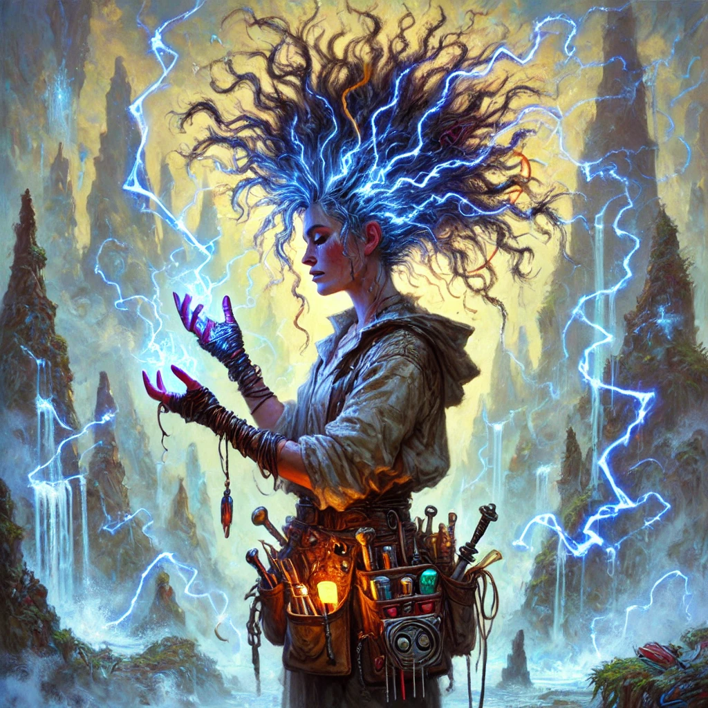 Die Knistari sind die Bewohner*innen des Knisterkamms, einer wilden und energiegeladenen Region voller zerklüfteter Felsen und magischer Entladungen. Sie sind das innovativste und zugleich chaotischste Volk Lumtheras, getrieben von einem unstillbaren Durst nach Wissen und Fortschritt. Für die Knistari ist jede Herausforderung eine Gelegenheit, neue Technologien oder magische Konzepte zu entwickeln – oft ohne Rücksicht auf mögliche Gefahren.