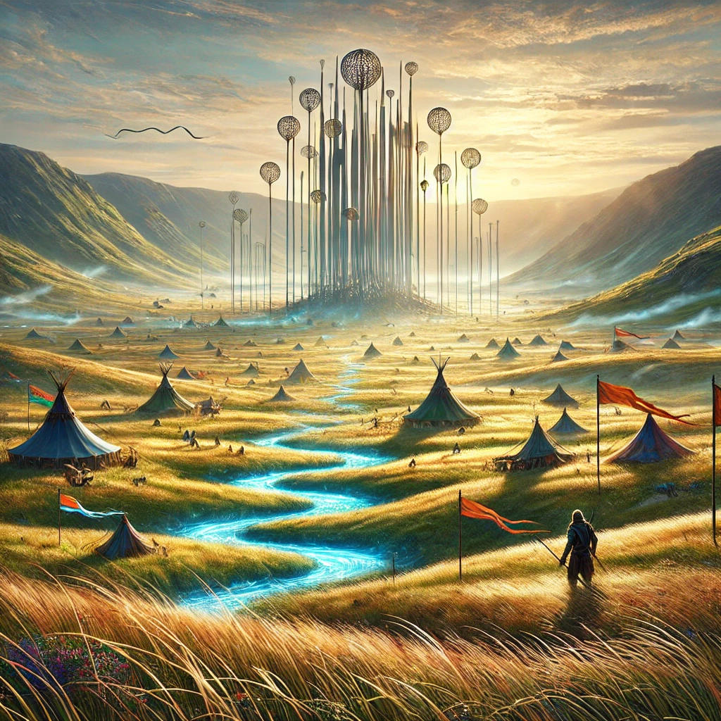 In den weiten Ebenen der Scheibe, zwischen sanft geschwungenen Hügeln und von Lumina-Bächen durchzogen, erstrecken sich die flüsternden Steppen. Sie macht den größten Teil der Welt aus und umrundet fast vollständig die Balance-Stadt.