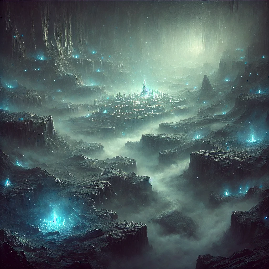 Die Hauptstadt des Nebelkraters, Dämmergrund, liegt in einer weitläufigen Höhle tief in der Erde abgehend vom Krater. Sie wird von einem Netzwerk aus Lumina-Lichtern beleuchtet, die wie Sterne an der Höhlendecke funkeln. Dämmergrund ist bekannt für seine labyrinthartigen Straßen und die Nebeltore, magische Portale, die mit Lumina betrieben werden und scheinbar an zufällige Orte der Stadt führen – oder auch wieder zurück an den Ausgangspunkt.